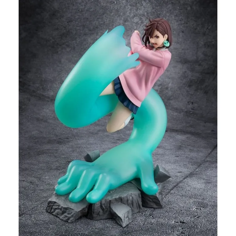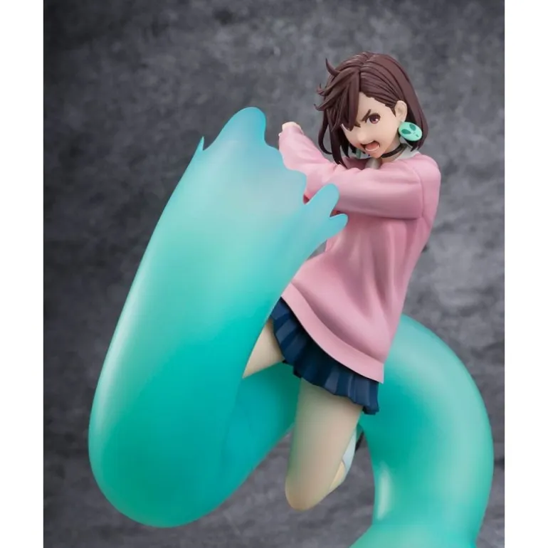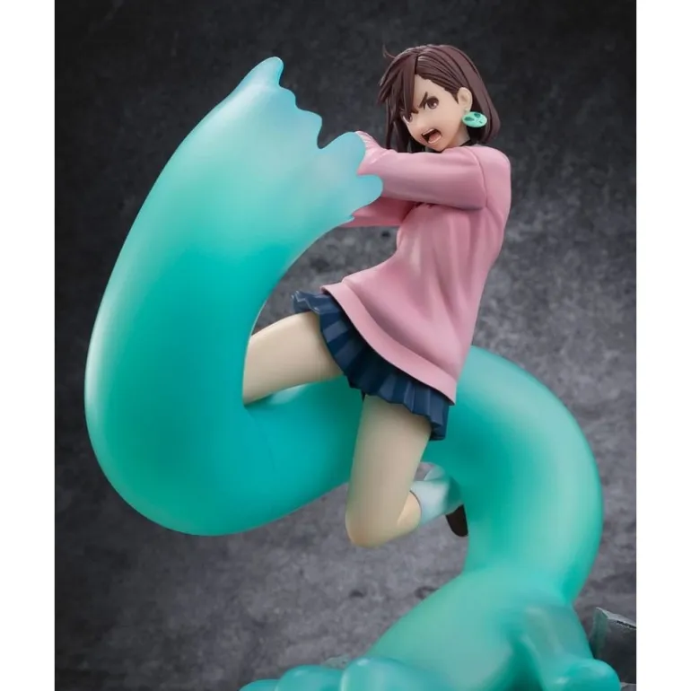 Sumérgete en el universo de Dandadan con esta impresionante estatuilla de Momo, creada por Bandai Tamashii Nations. Esta figura de 17 cm de altura captura a Momo en una dinámica pose, abrazada por una mano gigante de color azul verdoso que añade un toque especial a su diseño. El personaje viste una sudadera rosa sobre una falda azul marino, mostrando su expresión decidida y detalles meticulosamente reproducidos.