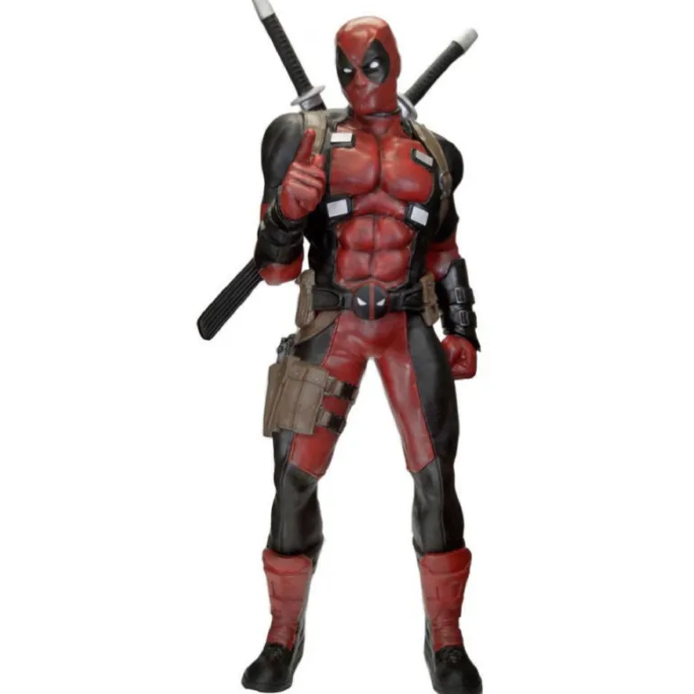 No dejes de mirar todas las fotos para que puedas apreciar el trabajo de pintura y los magníficos detalles de esta escultura que será el orgullo de cualquier coleccionista de figuras o fan de Marvel y de este Deadpool en particular.