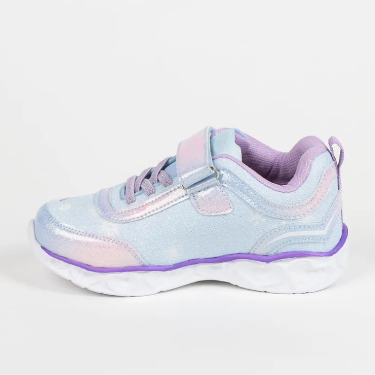 Descubre la mágica Deportiva Suela Ligera EVA con Luces Frozen, diseñada especialmente para los pequeños amantes de la famosa película. Estas zapatillas destacan por su encantador diseño en tonos azul y lila, con un acabado brillante que captura la esencia del reino de Arendelle.