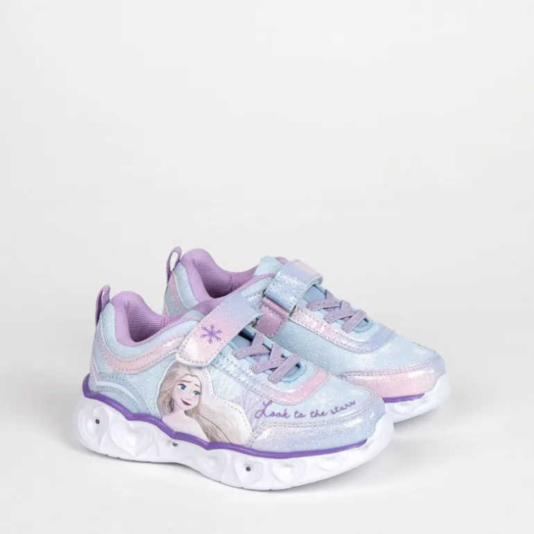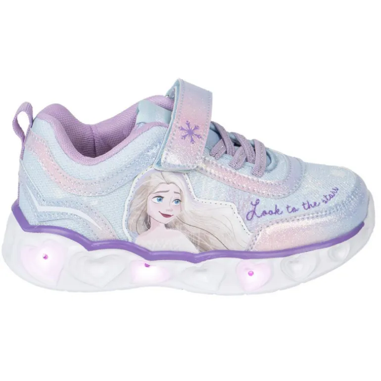 Un detalle encantador son las luces LED en la suela, que iluminan cada paso con un suave destello, haciendo que cada aventura sea aún más emocionante. La figura de Elsa en el lateral y la frase «Look to the stars» añaden un toque de fantasía a este modelo que encantará a cualquier niño.