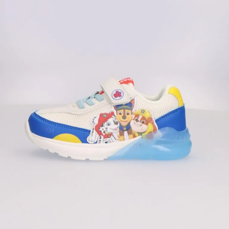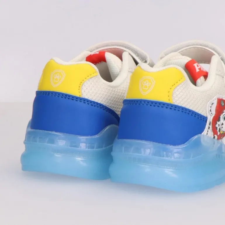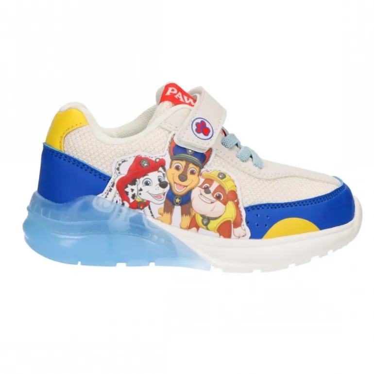 Haz que los paseos de los más pequeños sean una aventura con estas deportivas de la Patrulla Canina. Confeccionadas en PU y poliéster, estas zapatillas ofrecen comodidad y resistencia, perfectas para el uso diario de los niños. La combinación de colores vibrantes, azul, amarillo y blanco, se complementa con graciosos gráficos de los personajes de Paw Patrol en el lateral, haciendo que sean las favoritas de los fans de esta popular serie animada.