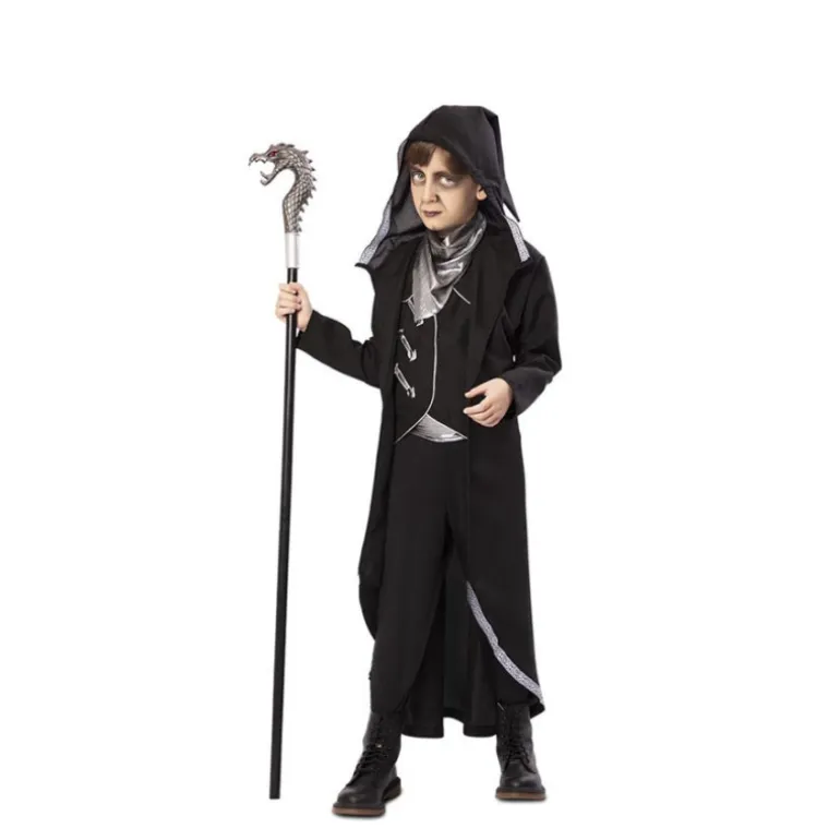 Este disfraz de hechicero negro transformará a tu pequeño en el protagonista de su propia aventura mágica. Diseñado con detalles cautivadores, incluye una chaqueta con capucha y un chaleco simulado que evocan el misterioso mundo de la hechicería. El conjunto se completa con un pañuelo y un cinturón, aportando un toque auténtico al atuendo.
