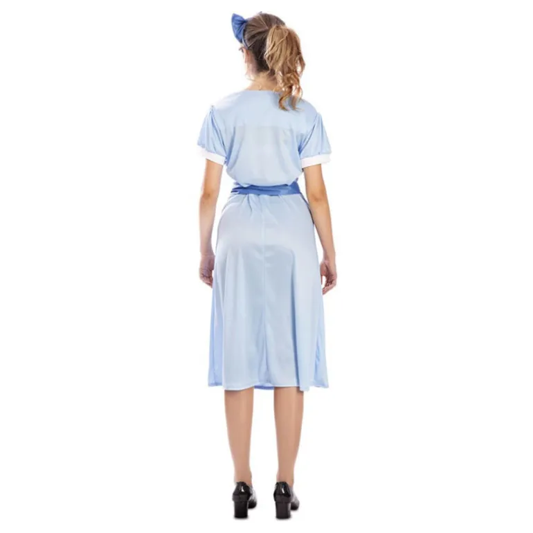 El vestido presenta mangas cortas y un corte midi, ideal para recrear el estilo icónico del personaje. Este disfraz es perfecto para fiestas de disfraces, eventos temáticos o simplemente para revivir la magia de los cuentos.