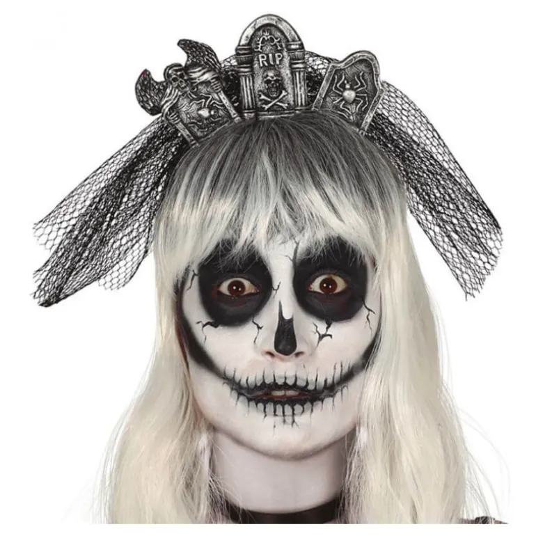 Diadema Lápidas con Velo. Ideal para fiestas de terror como puede ser halloween. ¡Compra con total seguridad y confianza en , un comercio online que cumple con todas las normativas de la U.E.!