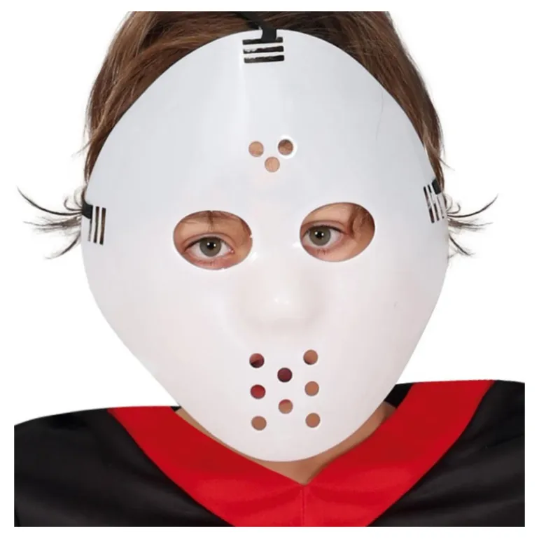 Convierte a tu pequeño en el terror de las fiestas con este impactante disfraz de asesino de hockey. Diseñado especialmente para los más atrevidos, este conjunto incluye una máscara blanca con detalladas perforaciones que evocan el clásico look de un jugador de hockey misterioso. La camiseta negra complementa el disfraz con un estampado frontal de una máscara con cuchillos cruzados, acentuado por detalles en rojo y blanco que le dan un toque dramático.
