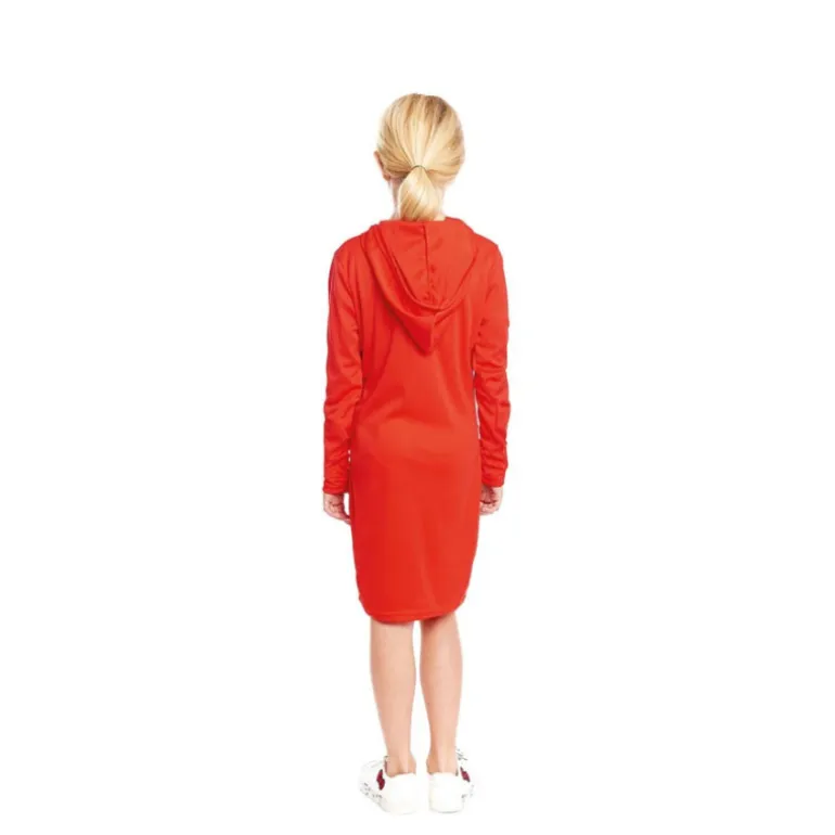 Este disfraz de atracadora para niña es perfecto para aquellas pequeñas que desean ser el centro de atención en cualquier fiesta o evento. El conjunto incluye un vestido rojo de diseño sencillo pero impactante, acompañado de una capucha que le añade un toque de misterio y aventura.