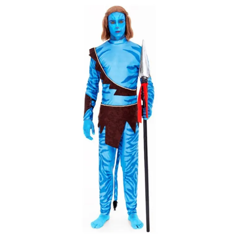 Transforma tu experiencia de disfraz en una auténtica aventura con nuestro disfraz de Avatar para hombre. Este conjunto único incluye una camiseta y pantalón de vibrante color azul con detalles de rayas que evocan el icónico aspecto de los habitantes del planeta Pandora. El cinturón marrón ofrece un contraste perfecto, acompañado de una banda y una cola que añaden autenticidad al conjunto. Los brazaletes completan este impresionante atuendo, asegurando que estés listo para cualquier evento o fiesta temática.
