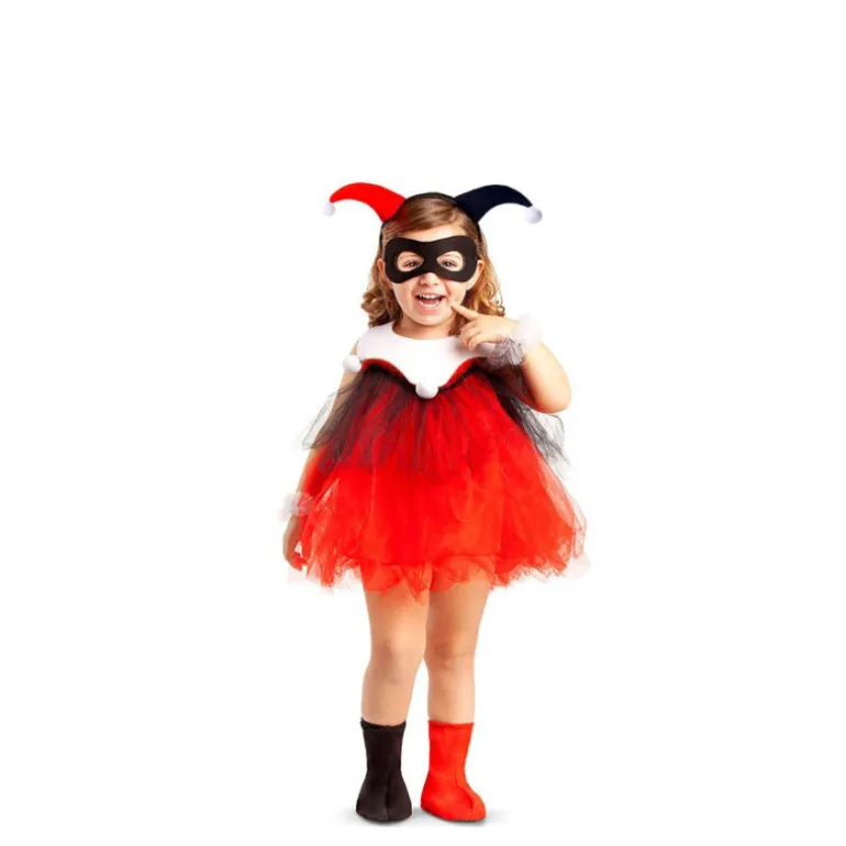 Disfraz de Bufona para bebé. Incluye Diadema, cuello, vestido, antifaz, cubre botas y brazaletes