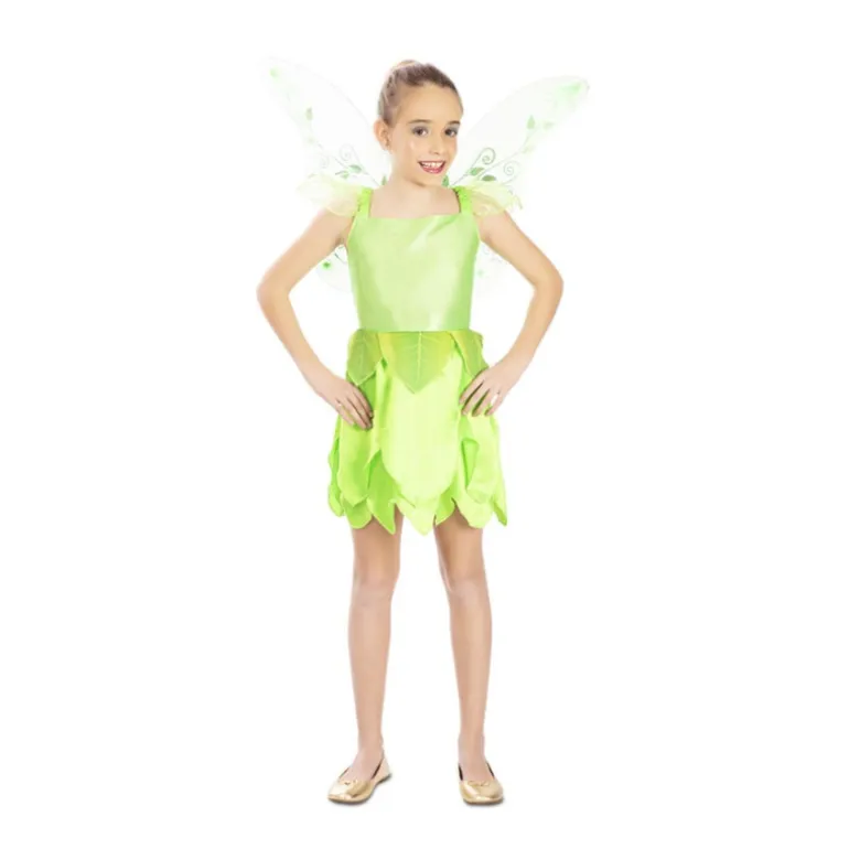 Este encantador disfraz de Campanilla está diseñado para hacer que tu pequeña se sienta como la verdadera hada de Peter Pan. El conjunto incluye un llamativo vestido verde que se asemeja a las hojas de un bosque mágico y unas alas translúcidas con delicados detalles en verde que añaden un toque fantástico.