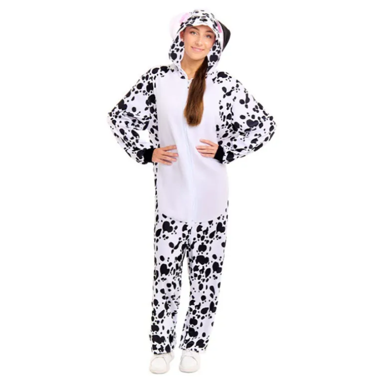 Este disfraz incluye una práctica capucha con orejas de dálmata, agregando un toque lúdico y divertido a tu look. Además, incluye una cola integrada que complementa el diseño de manera ideal.