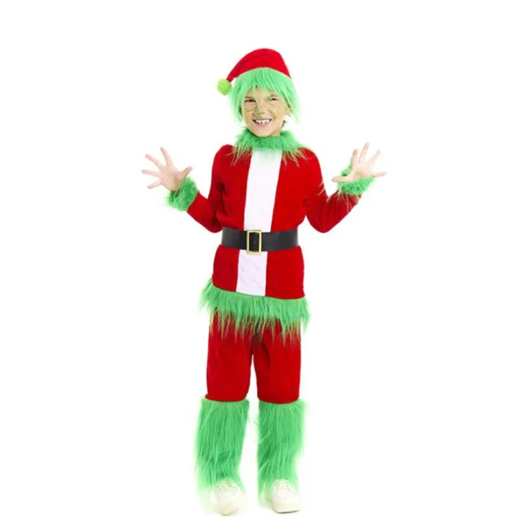 Este encantador disfraz de Duende Gruñón de Navidad en verde y rojo está diseñado especialmente para niños, ofreciendo una divertida opción para las fiestas navideñas. El conjunto incluye una camiseta de color rojo brillante adornada con detalles en verde que imitan el característico pelaje del personaje, junto a un cinturón negro con hebilla dorada que se ata alrededor de la cintura, proporcionando un ajuste cómodo y seguro. El llamativo pantalón rojo también cuenta con decoraciones verdes en la parte inferior, replicando el estilo único del duende.