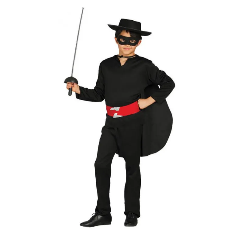 Incluye: Sombrero, antifaz, camisa, capa, cinturón, pantalón No Incluye: florete ni calzado.