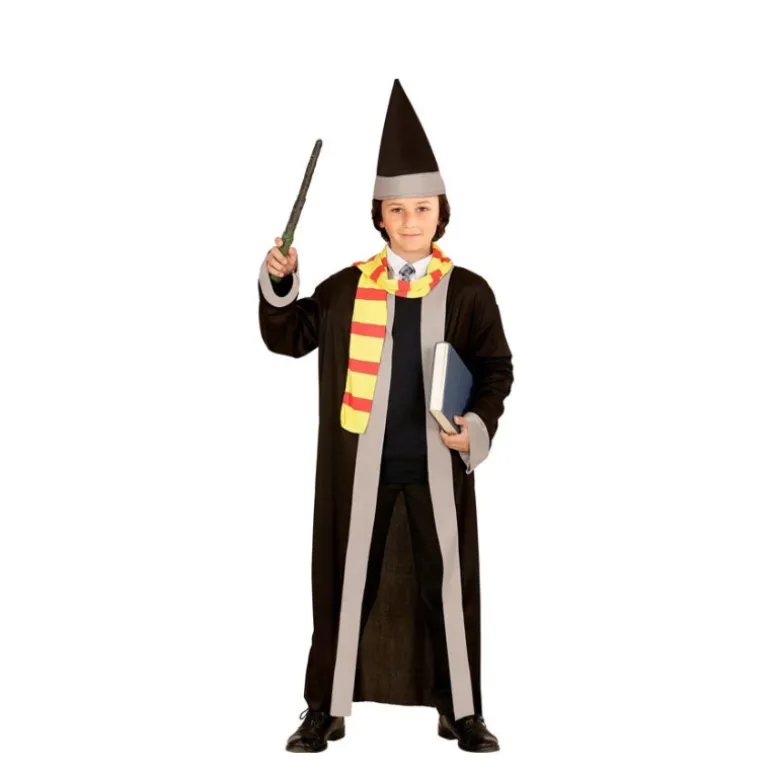 Transforma a tu pequeño en un auténtico aprendiz de magia con este disfraz de Harry Potter, ideal para niños y adolescentes. El conjunto incluye una elegante túnica de color negro con detalles en gris que le otorga un aire místico y auténtico. La bufanda, de franjas amarillas y rojas, es un guiño inconfundible al estilo inconfundible de Hogwarts, mientras que el sombrero puntiagudo complementa el look hechicero de forma perfecta.