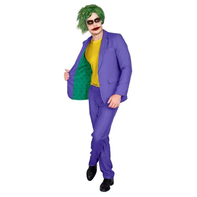 Transforma tu apariencia con este **impactante disfraz de Joker** en color púrpura para hombre. Este conjunto incluye una **elegante chaqueta y pantalones** a juego que capturan el espíritu del icónico personaje. La chaqueta presenta un tono púrpura vibrante y elegante, ideal para destacar en cualquier evento, y su diseño es cuidadosamente elaborado para ofrecer comodidad y estilo.