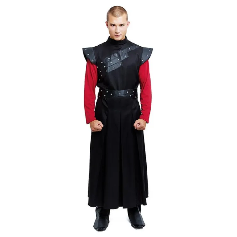Sumérgete en el mundo de fantasía con este impresionante disfraz de Juego de Tronos para hombre. El conjunto incluye una túnica negra de corte largo que se asemeja al atuendo de un noble guerrero. La túnica está decorada con detalles de remaches en los hombros, acentuando un estilo medieval auténtico. Complementando el look, se incluye un cinturón negro que añade estructura y carácter al conjunto.