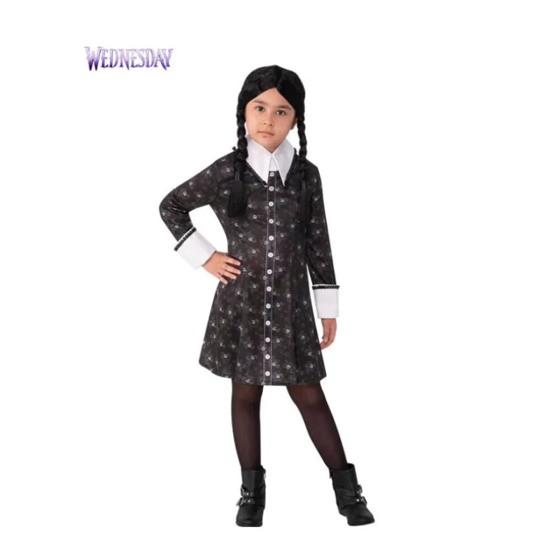 Disfraz de Miércoles de La Familia Addams con lunares para niña. Incluye Vestido. No incluye Peluca, medias ni calzado