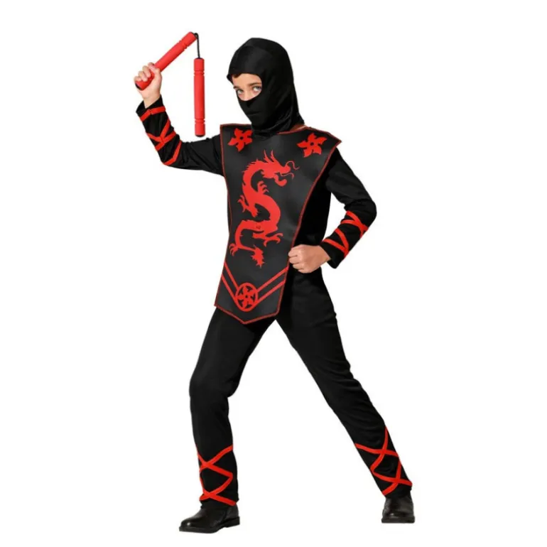 Conviértete en el héroe más audaz con este impresionante Disfraz de Ninja Dragón Rojo diseñado especialmente para niños. Este disfraz destaca por su llamativo diseño en negro y rojo, ideal para esas ocasiones especiales donde la imaginación no tiene límites.