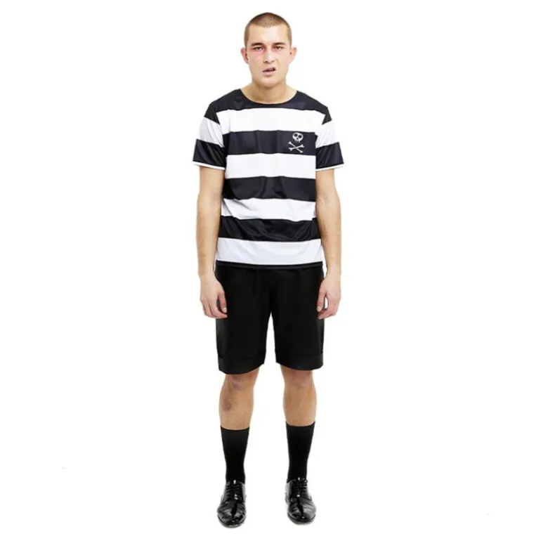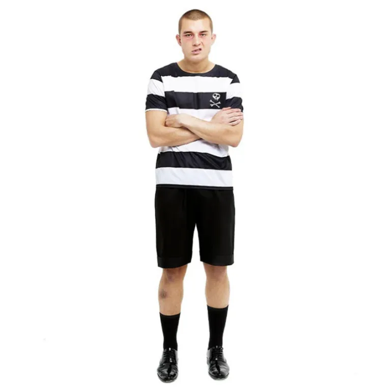 Transforma cualquier celebración en una experiencia única con el Disfraz de Niño Tenebroso para Hombre. Este conjunto incluye una llamativa camiseta y pantalones a juego. La camiseta presenta un diseño de rayas horizontales en blanco y negro, con un detalle de calavera en el pecho, añadiendo un toque misterioso y temático. Los pantalones cortos en negro complementan perfectamente el look, proporcionando comodidad y estilo.