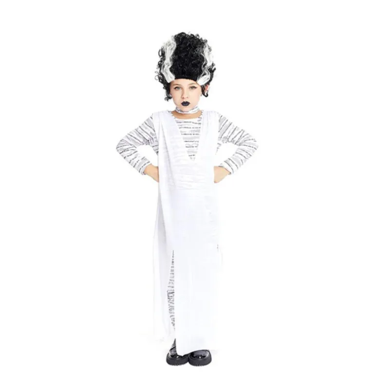 Transforma a las jóvenes de la casa en una sorprendente Novia Monster con este elegante disfraz en color blanco, diseñado para niñas y adolescentes. El conjunto destaca por su vestido largo blanco, que se complementa con un toque de modernidad gracias a su diseño de capa abierta, dejando ver el mono de estampado en tonos grises y blancos debajo. El disfraz incluye un collar plateado que aporta el toque final perfecto a este look monstruoso.