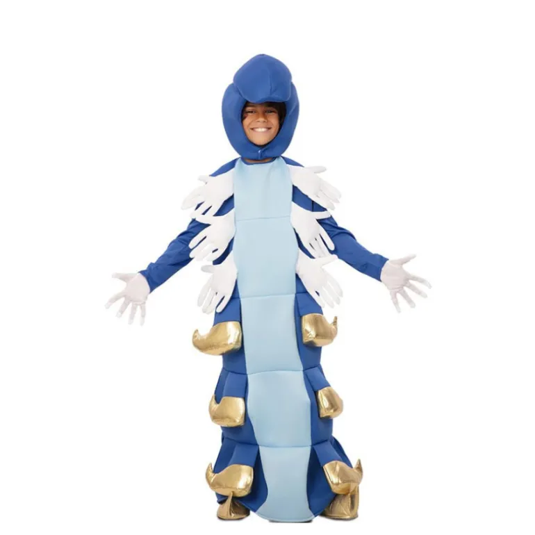 Despierta la imaginación de tu pequeño con este disfraz de oruga azul y dorada. El conjunto incluye un impresionante traje azul con detalles dorados que imitan las patas de una oruga, una capucha a juego que completa la apariencia del insecto y añade un toque de fantasía al conjunto. Incluye también guantes y cubrezapatos para lograr un look completamente auténtico.