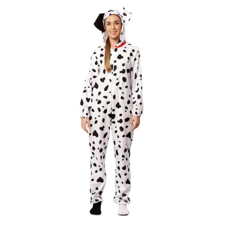 Sumérgete en el mundo de la diversión con este encantador Disfraz de Perro Dálmata para adultos. Este maillot enterizo de color blanco presenta un diseño clásico de manchas negras que simulan el patrón característico de los dálmatas, perfecto para eventos temáticos o carnavales. El disfraz incluye una capucha con orejas de perro que añade un toque adorable y auténtico a tu atuendo.