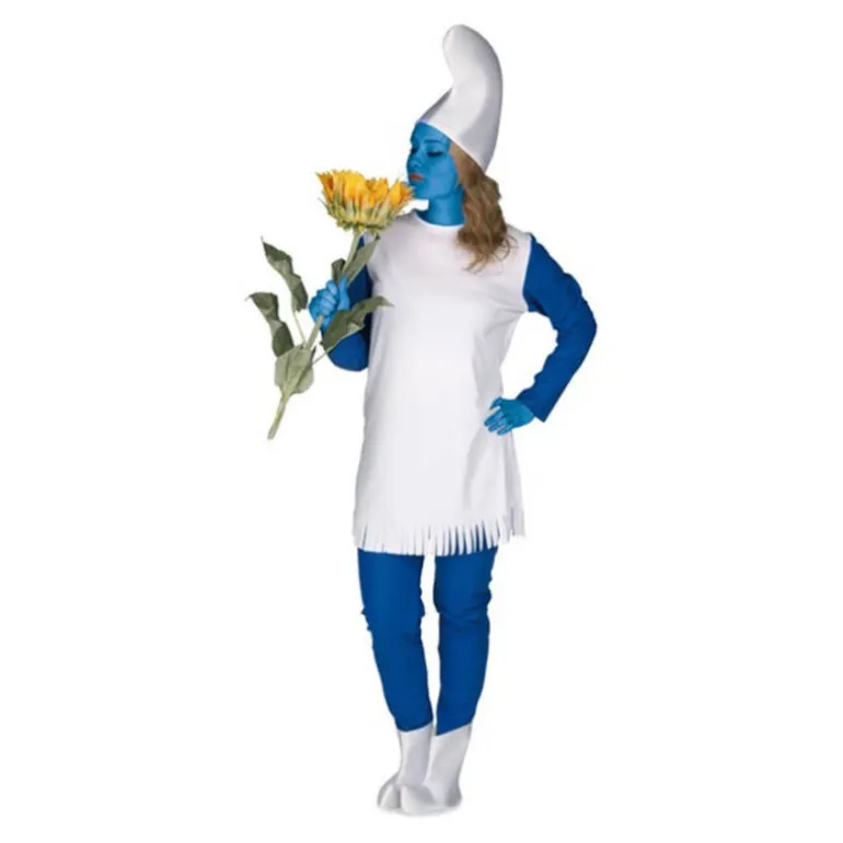 Disfraz de Pitufo para mujer. Incluye vestido, pantalón, gorro y botas. No incluye flor ni maquillaje. ¡Compra en un comercio online que cumple con todas las normativas de la U.E., compra en !