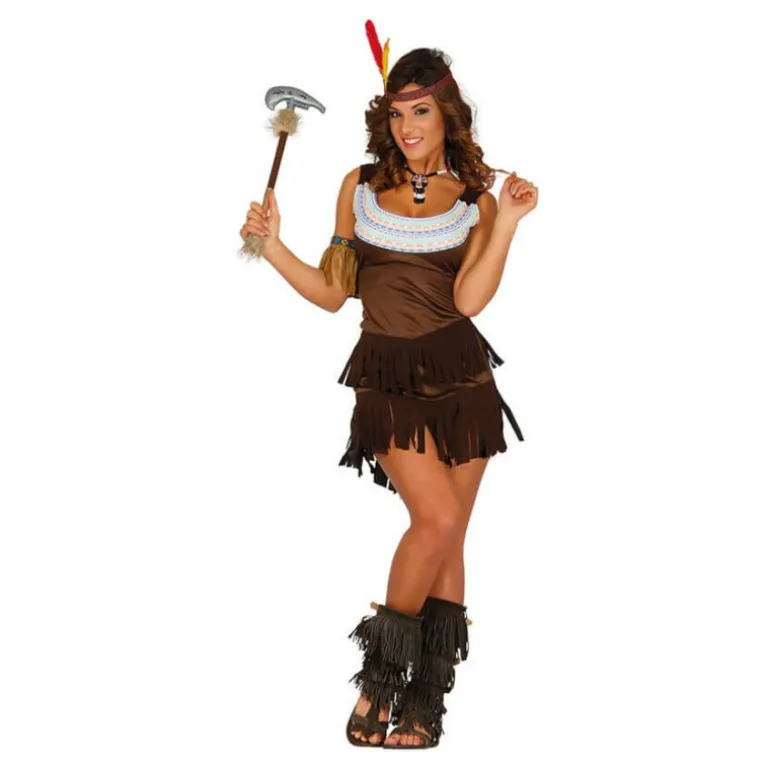 Disfraz de Pocahontas para mujer. Incluye cinta cabeza y vestido. No incluye collar, hacha, calentadores ni calzado. ¡Compra en un comercio online que cumple con todas las normativas de la U.E., compra en !