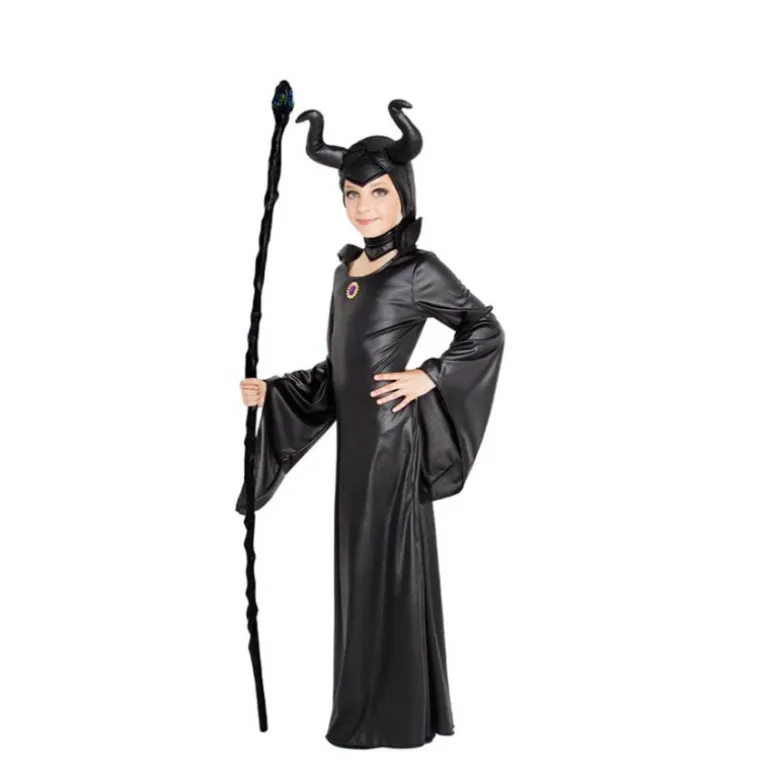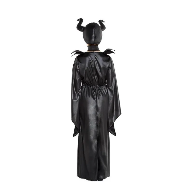 Este disfraz de Reina Malvada para niña es el atuendo perfecto para que tu pequeña domine cualquier evento con elegancia y un aire de misterio. El conjunto incluye un vestido de color negro, de corte largo y fluido, acompañado de un llamativo gorro con cuernos, que aporta un toque majestuoso y audaz.