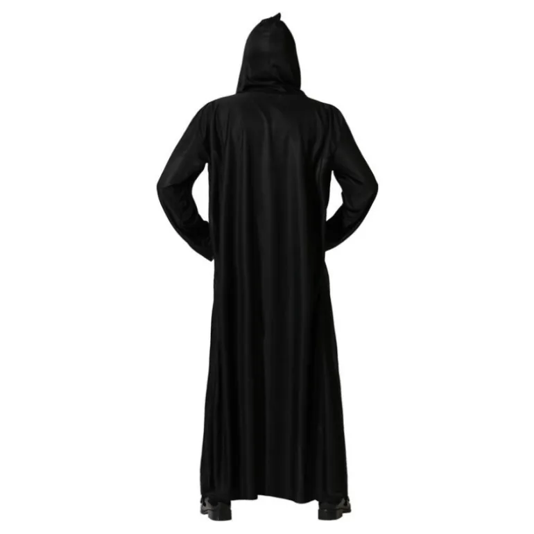 Prepárate para una noche de terror con este Disfraz de Scream para adultos. La imagen muestra una túnica larga de color negro, hecha de un material ligero ideal para moverte con facilidad. La túnica tiene un diseño clásico con capucha integrada, perfecta para recrear el icónico look del personaje.