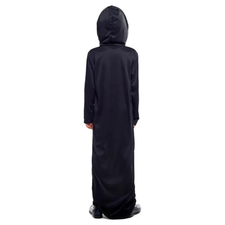 Transforma a tu pequeño en el icónico Asesino Enmascarado con este impresionante disfraz de Scream para niños. El conjunto incluye una elegante túnica negra de manga larga, confeccionada en un material suave y cómodo que permite libertad de movimiento. La capucha integrada añade un toque misterioso, ideal para complementar la terrorífica máscara.