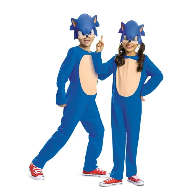 Transforma a los pequeños en el veloz erizo de los videojuegos con este disfraz de Sonic azul para niños. El conjunto incluye un mono completo y una máscara que captura fielmente el estilo icónico del personaje. El mono es de un vibrante azul con un frente de color beige imitando el vientre de Sonic, y está diseñado con un ajuste cómodo para permitir libertad de movimiento mientras los niños juegan y corren como su héroe favorito.
