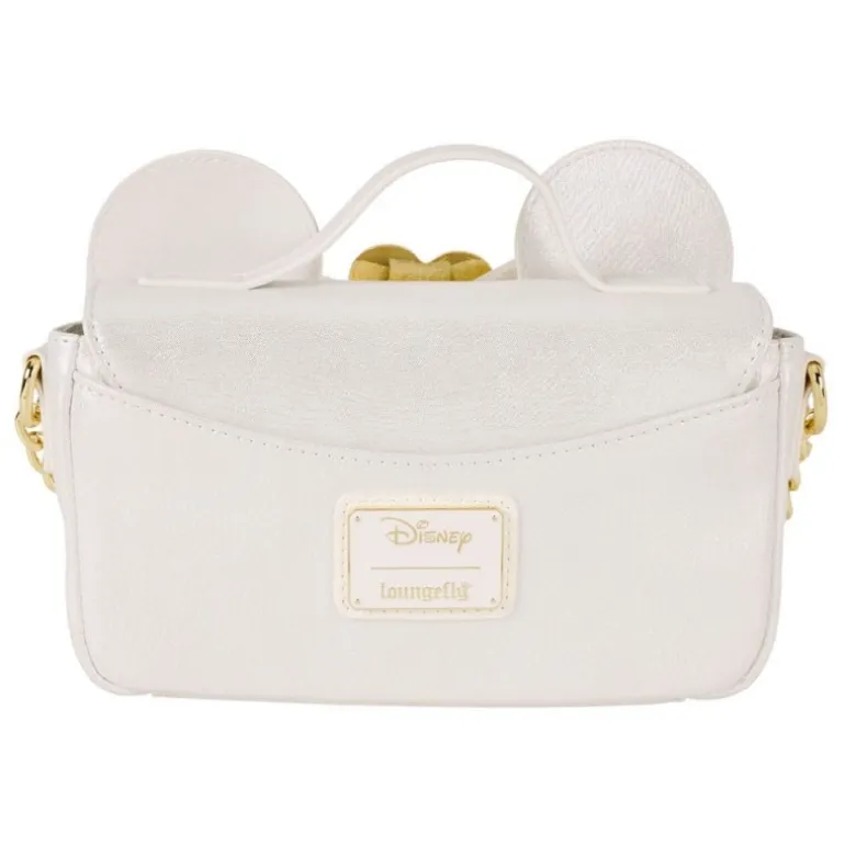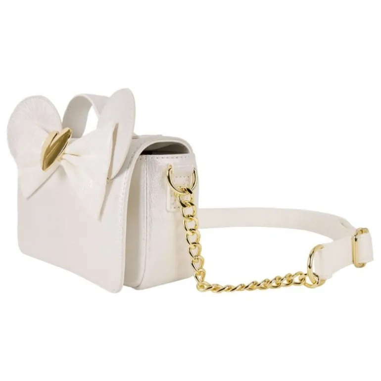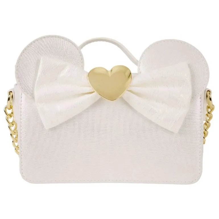 Descubre la elegancia y el encanto de la bandolera Disney by Loungefly Wedding. Esta exquisita pieza de merchandising cuenta con un diseño inspirado en bodas, presentando un sutil color blanco perla con un lazo en relieve que añade sofisticación y estilo. A través de sus icónicas orejas y un corazón dorado en el centro del lazo, esta bandolera evoca la magia de Disney en cada detalle.