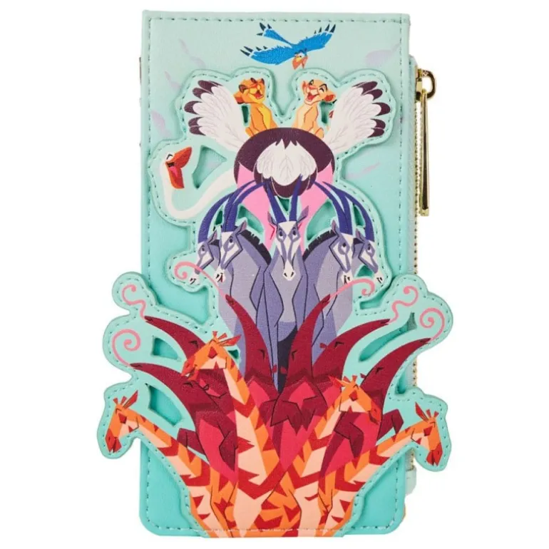 Descubre la carterita de carné Lion King de Disney by Loungefly, un accesorio imprescindible para los amantes del clásico de Disney. Este elegante porta tarjetas presenta un vibrante diseño inspirado en el Rey León, con llamativos colores que incluyen tonos de azul turquesa y detalles en rojo y dorado. Su frente presenta una ilustración detallada de varios personajes icónicos, agregando un toque de nostalgia y aventura a tu día a día.