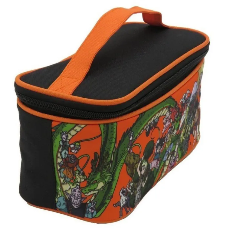Un cómodo y práctico neceser con licencia oficial de Dragon Ball. Tiene forma muy cuadrada, con asa superior y unas medidas de 23 x 11 x 11 cm. Se abre con cremallera por la parte superior dejando a la vista todo el interior, donde hay varios compartimentos y otro bolsillo con cremallera.