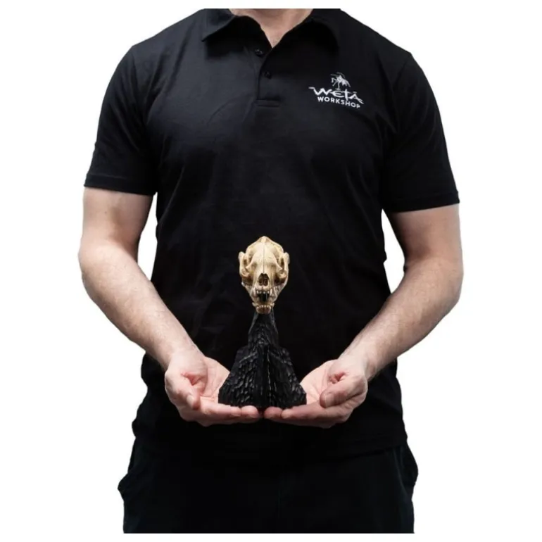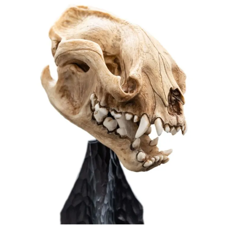 Realizada por Weta Workshop, reconocida por su meticulosa atención al detalle, esta estatua es un complemento perfecto para cualquier fanático de la saga. Representa el cráneo de un Warg, una criatura mítica que infunde respeto y admiración. Su acabado realista y la textura del material aseguran una experiencia visual impactante, ideal para exhibir en tu estantería de colección.