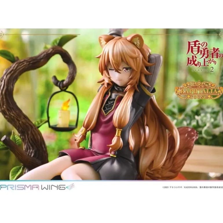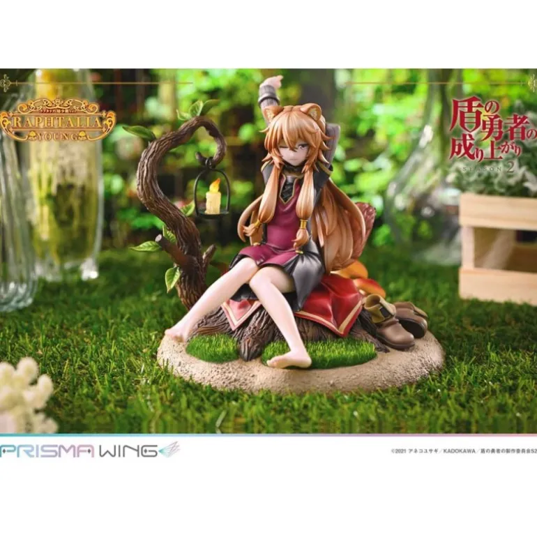 La estatua de Raphtalia en su versión joven de «The Rising of the Shield Hero Season 2» cautiva por su detallado diseño, mostrando a la entrañable personaje sentada sobre un tronco, rodeada de naturaleza. Con unas medidas aproximadas de 15 x 17 x 18 cm, la figura está fabricada en PVC de alta calidad por Prime 1 Studio, dentro de su reconocida línea «Prisma Wing«.