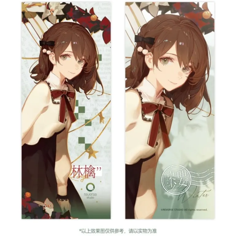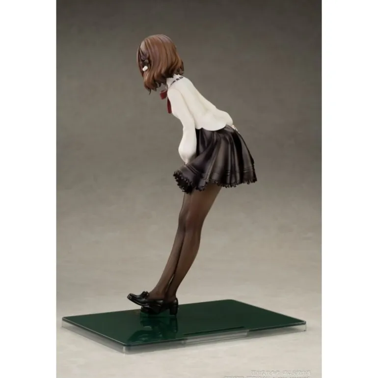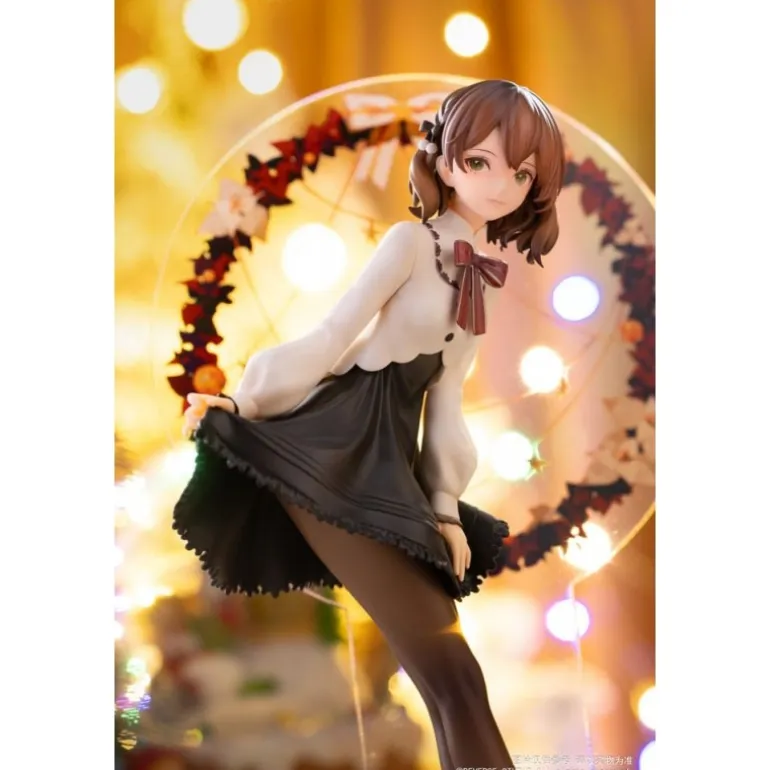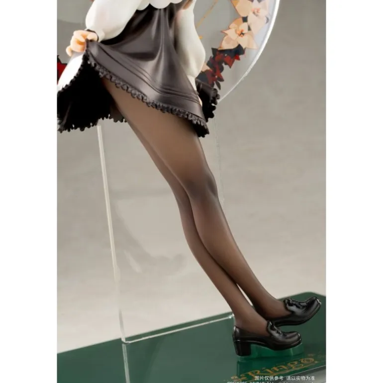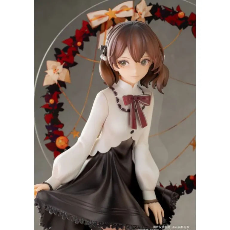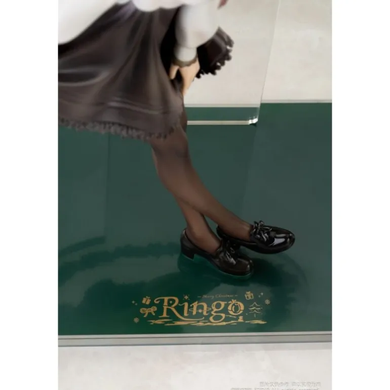 La estatua de PVC 1/8 Winter Ringo de la serie Desktop Girls destaca por su diseño delicado y elegante. Con un tamaño de aproximadamente 24 cm, esta figura retrata a un personaje original con una expresión serena y detallada. La estatua luce un atuendo de invierno que combina una blusa blanca con una falda negra, complementado con medias oscuras y zapatos de tacón. El detalle del lazo rojo en el cuello y el tocado en el cabello añaden un toque distintivo y encantador. La figura se presenta sobre una base transparente y está rodeada por un aro decorativo que simula elementos invernales, aportando un aire festivo y ornamental. Fabricada por Reverse Studio, esta estatua con licencia oficial viene empaquetada en una atractiva caja con ventana, lo que la convierte en un regalo perfecto para los fans del manga y anime o para quienes desean algo especial y original para su colección.