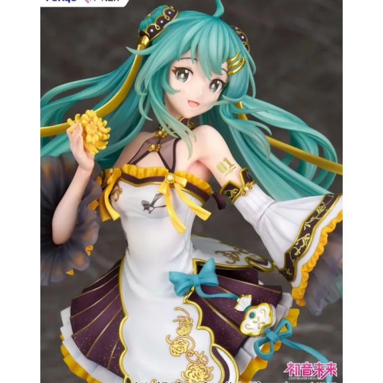 Descubre la estatua detallada de Hatsune Miku en su versión Mid-Autumn Festival, cuidadosamente diseñada por Furyu. Esta pieza de colección de 27 cm captura la esencia de Miku con un meticuloso nivel de detalle. Sus vibrantes colores pastel y su vestuario inspirado en festividades orientales llenan de vida a esta figura. El vestido blanco con detalles dorados y amarillos combina con su icónico cabello verde, aportando un contraste visual impresionante.