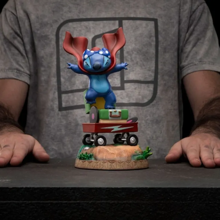 La estatua está perfectamente detallada, desde las texturas de la ropa hasta los expresivos ojos de Stitch, ofreciendo una representación fiel y dinámica. Esta figura se convierte en un regalo ideal para fanáticos del universo de Disney y coleccionistas de artículos de Lilo & Stitch. Su tamaño y acabado aseguran que será una pieza central en cualquier colección.