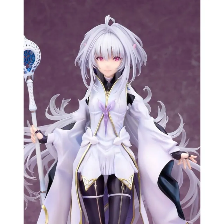 Sumérgete en el mundo de Fate/Grand Order con esta impresionante estatua de Caster/Merlin. Fabricada en PVC y a escala 1/7, mide aproximadamente 27 cm de altura. Esta figura capta cada detalle del personaje, desde su majestuoso atuendo blanco y dorado hasta su elegante báculo ornamentado. La escultura muestra a Merlin con una pose serena sobre una base decorada con flores primaverales, lo que aporta un toque de magia y encanto a cualquier colección.