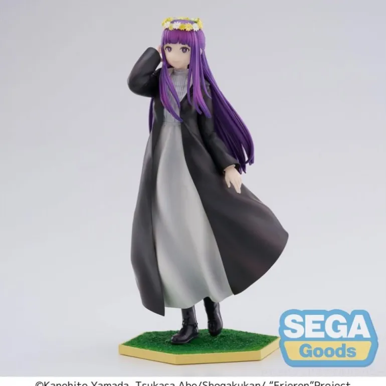 Descubre la estatua Luminasta PVC Fern Flower Garden inspirada en ‘Frieren: Beyond Journey’s End’. Este exquisito coleccionable mide aproximadamente 18 cm y está fabricado en PVC de alta calidad. La figura representa a un personaje con cabello largo en tono violeta, adornado con una corona de flores amarillas, que destaca sobre su vestimenta de tonos oscuros y grises. La base hexagonal añade estabilidad y presenta una textura verde que simula un césped. Es un producto con licencia oficial fabricado por Sega. Ideal para fanáticos del manga y anime, este artículo es perfecto tanto para colecciones como para regalos únicos.