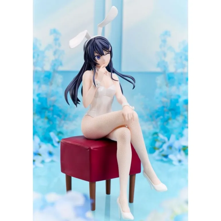 Descubre la estatua de Mai Sakurajima en versión Bunny del anime «Rascal Does Not Dream of Bunny Girl Senpai«. Este exquisito coleccionable, fabricado por Aniplex, mide aproximadamente 21 cm y está hecho de PVC de alta calidad. Mai aparece en un elegante traje de conejo blanco, sentado sensualmente sobre un taburete rojo, con orejas de conejo que le dan un toque lúdico y encantador.