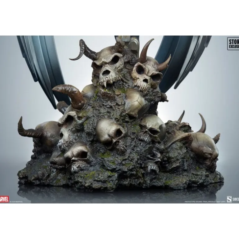 Descubre la estatua de Archangel de X-Men, una pieza maestra de la colección Premium Format de Sideshow Collectibles. Inspirada en la versión X-Force del personaje, esta estatua de poliresina de 73 cm captura la esencia poderosa de Archangel. Pintada meticulosamente, presume un diseño dinámico con alas metálicas que enmarcan su silueta. La base, adornada con calaveras detalladas, le añade un toque oscuro y dramático, resaltando su presencia imponente.