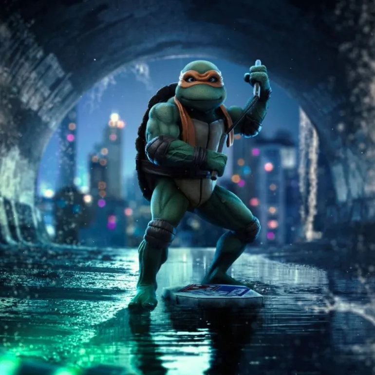 Esta figura no solo es ideal para decorar tu espacio, sino que también es un regalo original para cualquier amante de las Tortugas Ninja. Añade esta pieza única a tu colección y revive las emocionantes aventuras del grupo de reptiles más famoso del mundo.
