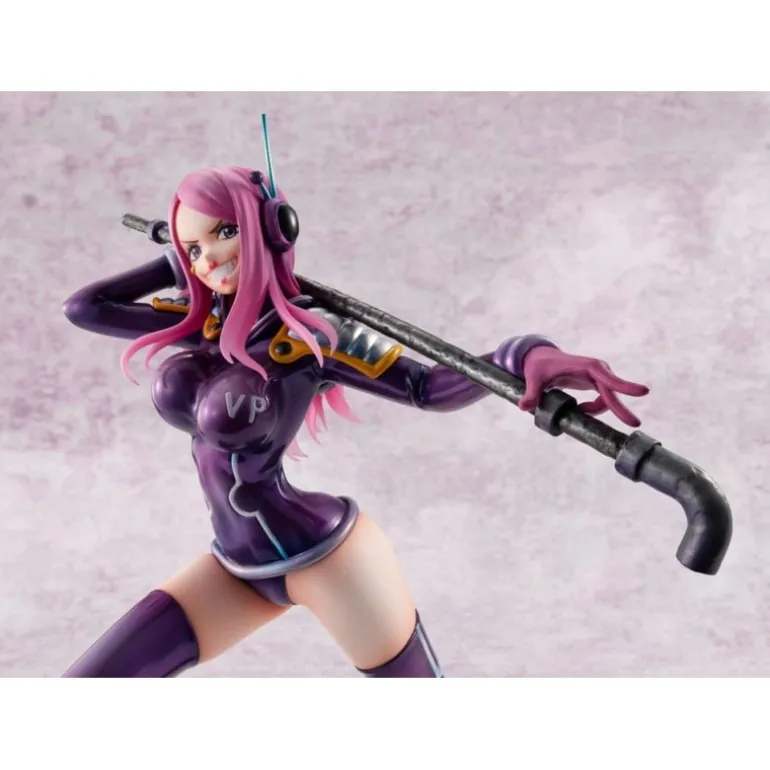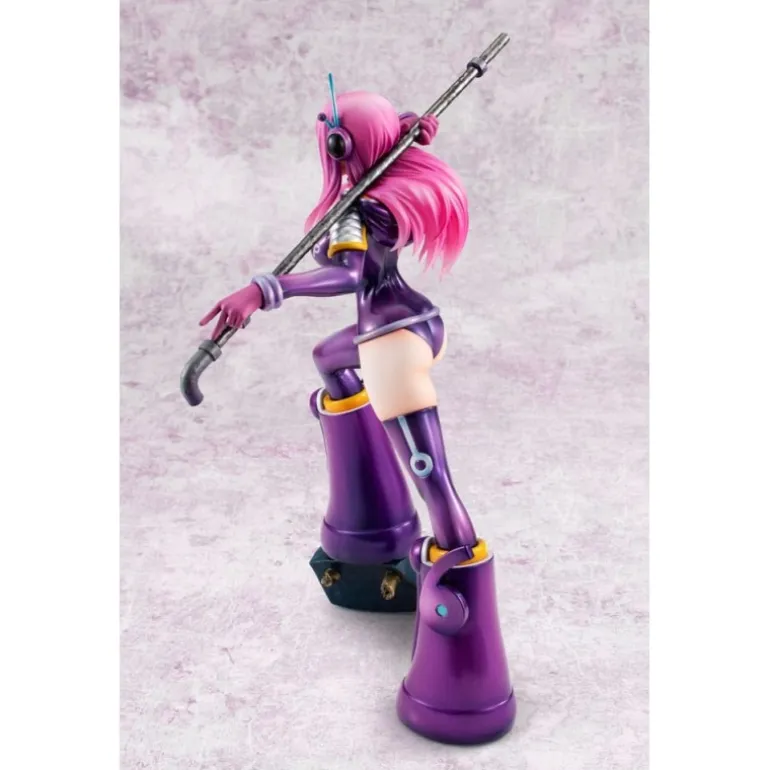 Con su atuendo púrpura distintivo, Bonney está esculpida en una pose dinámica que captura su personalidad desafiante. Sus detalles detallados desde el cabello rosado hasta sus botas altas hacen de esta pieza un deleite visual para cualquier fan de Manga y Anime.