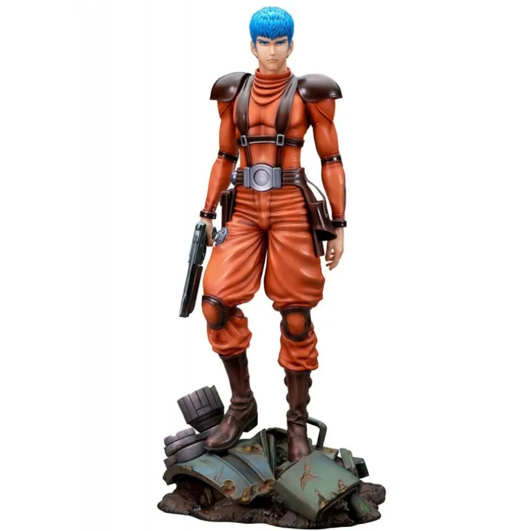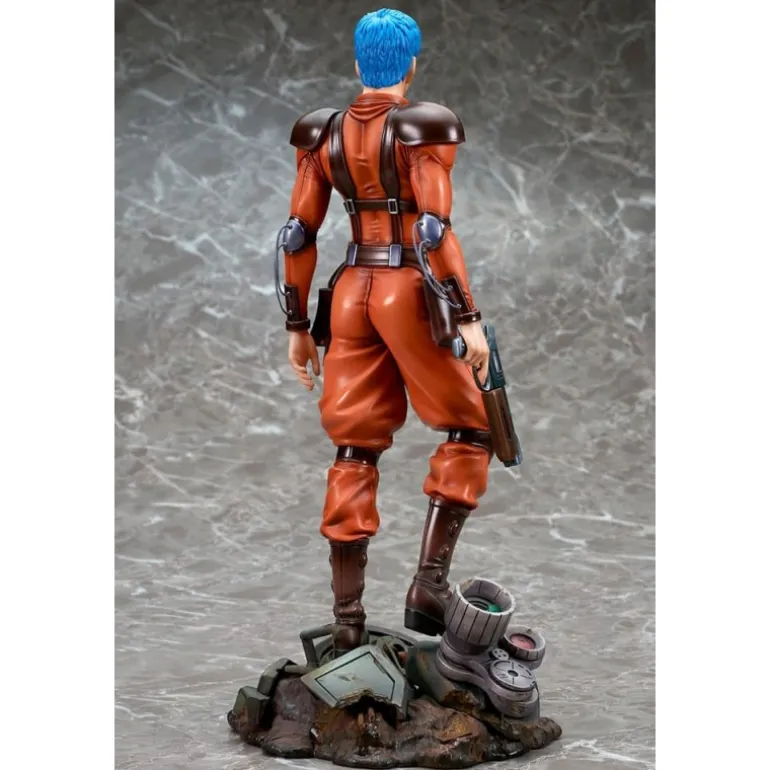 Descubre la estatua de Chirico Cuvie del anime ‘Armored Trooper Votoms’, una pieza imprescindible para los fanáticos del género. Fabricada en PVC de alta calidad, esta estatua a escala 1/6 mide aproximadamente 31 cm de altura. Chirico Cuvie se presenta con su característico traje en tonos naranjas, destacando detalles en marrón y su distintivo cabello azul. La figura se asienta sobre una detallada base que evoca un escenario post-batalla, aportando profundidad y contexto a la escena.