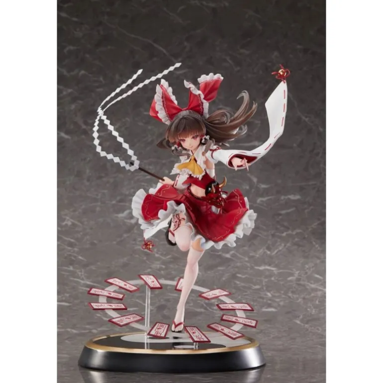 La estatua de PVC de Reimu Hakurei del Touhou Project captura la elegancia y dinamismo del personaje. Con un diseño vibrante, muestra a Reimu en una postura dinámica donde su vestido rojo con detalles en blanco ondea al viento. Sus cintas y accesorios cuidadosamente esculpidos añaden un toque de autenticidad. El nivel de detalle se extiende a su expresión facial y al movimiento de su cabello, creando una representación encantadora y fiel al original.