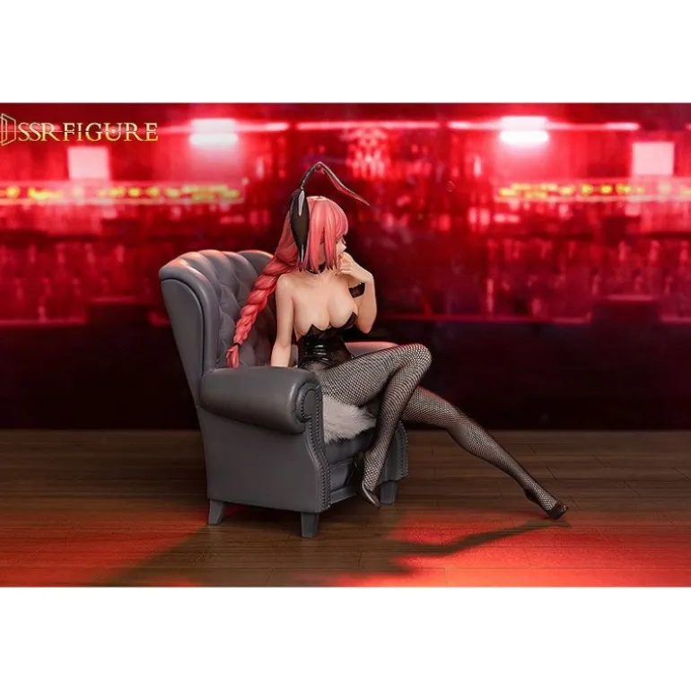 Este producto destaca por su sensual representación, mostrando al personaje con orejas de conejo, sentado de manera sugerente en un elegante sillón gris. El traje tipo conejita, combinado con medias de rejilla, añade un toque de sofisticación y estilo. La figura se presenta en una caja con ventana, ideal para exhibición o coleccionismo. Con unas medidas de 20,6 x 20,6 x 29,7 cm y un peso de 1,036 kg, es una pieza que no puede faltar en la colección de cualquier aficionado al mundo del anime y las figuras.