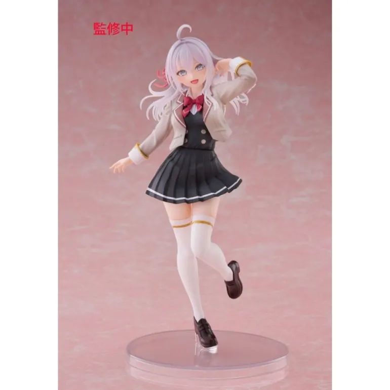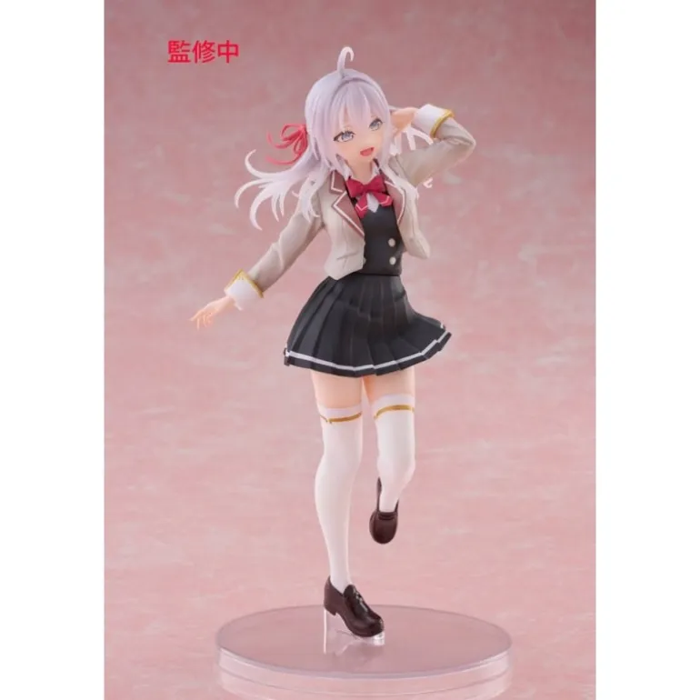 Descubre la estatua de PVC de Alya en uniforme escolar, inspirada en la serie Alya Sometimes Hides Her Feelings in Russian. Esta figura de 18 cm manufacturada por Taito Prize destaca por su cuidado diseño y gran atención al detalle. Alya viste un elegante uniforme escolar compuesto por una chaqueta beige, falda negra plisada y calcetas blancas hasta el muslo, todo complementado con un lazo rojo que resalta su dulzura y energía. Su cabello plateado y expresión alegre capturan perfectamente su esencia del anime. Un artículo con licencia oficial, ideal para coleccionistas de manga y anime que deseen añadir una pieza distinguida a su colección. Perfecto como regalo original o para darte un capricho especial.