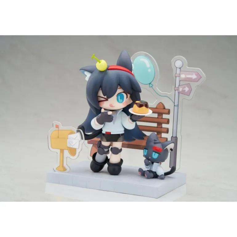 Descubre la encantadora estatua de la serie Arknights Dessert Time con el personaje Blaze, fabricada en duradero PVC de alta calidad. Esta figura captura a Blaze en un estilo chibi, con su característico cabello oscuro y orejas de gato, luciendo un guiño juguetón mientras sostiene un flan en un platillo. El diseño incluye adorables detalles como una cereza sobre su cabeza y guantes oscuros.